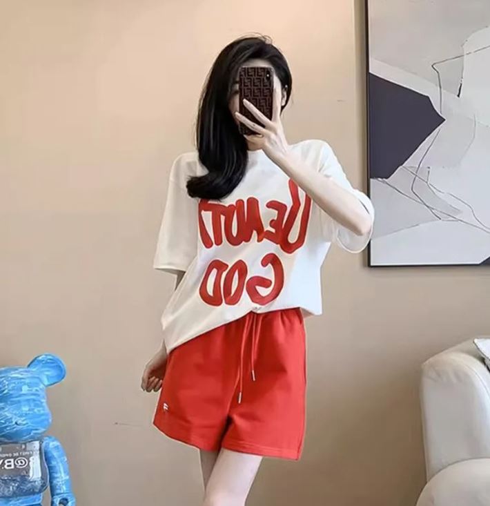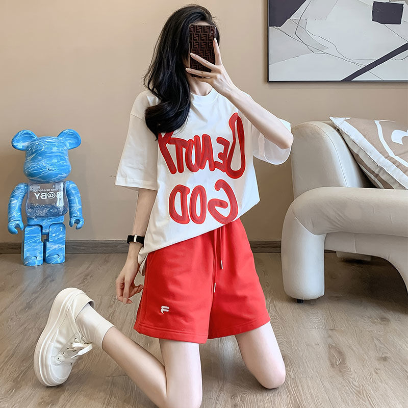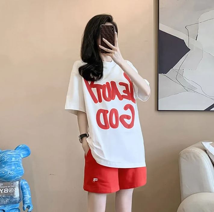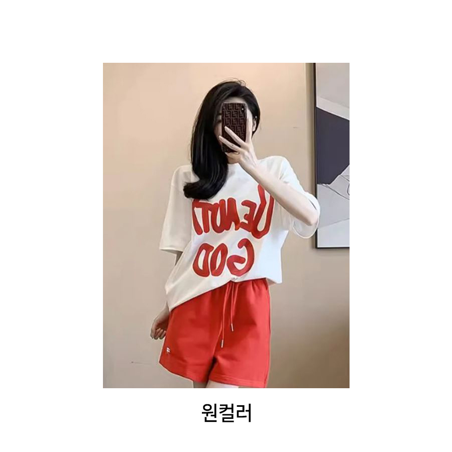 ◈[당일발송] .레터링 반팔 티셔츠 & 밴딩 쇼츠 2SET