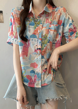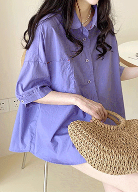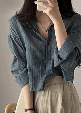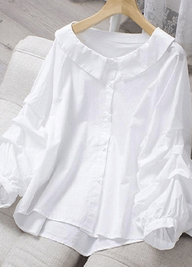 [당일발송]페미닌 퍼프 포켓 카라 셔츠