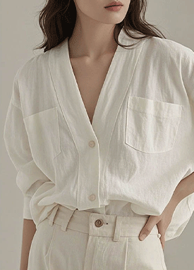 [당일발송]미니멀 브이넥 포켓 셔츠