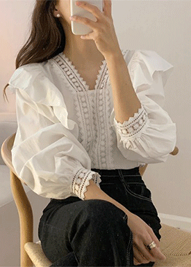 ◈[당일발송] 러블리 브이넥 레이스 블라우스
