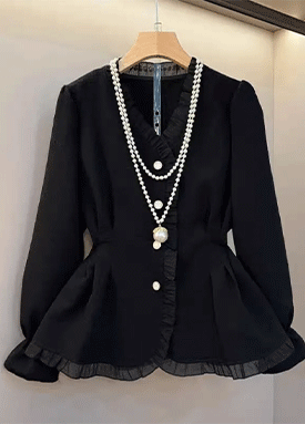 ◈[당일발송] 페미닌 슬림핏 진주 레이스 블라우스