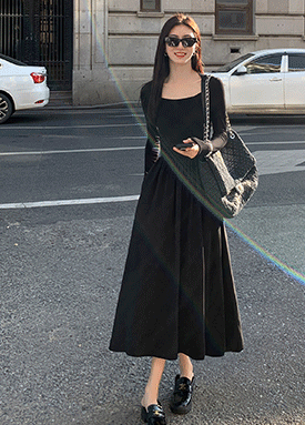 [당일발송] 볼레로 스퀘어 블랙 롱 원피스