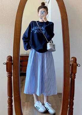 [당일발송]★목요특가 자정마감 50%★스위밍 풀 캐주얼 맨투맨&스트라이프 스커트 2SET