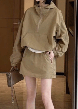 [블랙 당일발송]★목요특가 자정마감 50%★아노락 후드 점퍼&미니 스커트 2SET