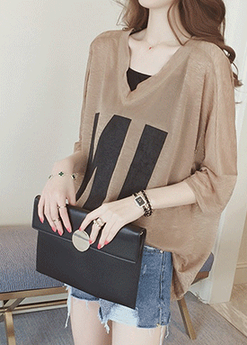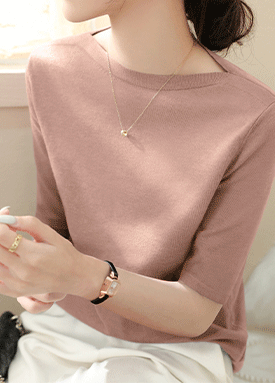 [당일발송]라운드 레이온 스판 심플 칠부 티셔츠