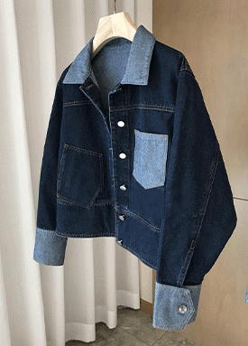 [당일발송]★목요특가 자정마감 50%★투톤 배색 캐주얼 데님 점퍼