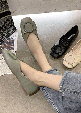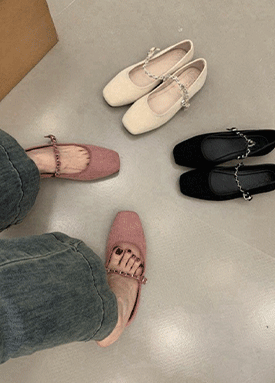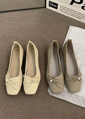 진주 셔링 스퀘어 플랫슈즈