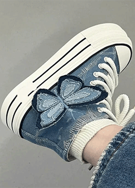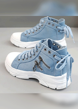나비 데님 하이탑 스니커즈