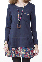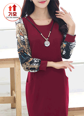 [당일발송]페미닌 소매 나염배색 기모안감 원피스