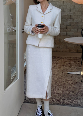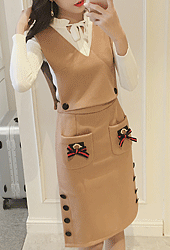 [당일발송]모직 버튼 포인트 베스트&스커트 원피스[OP#3464]