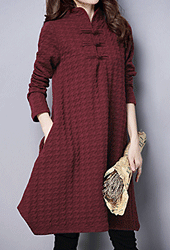 고리단추 엠보패턴 미들원피스