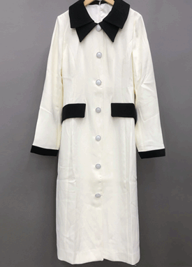 [당일발송] 배색 카라 단추 포인트 롱 원피스