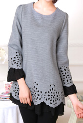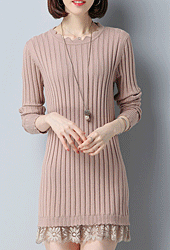 [당일발송]레이스 페미닌 골지 롱 니트
