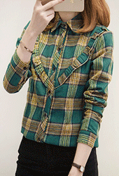 [당일발송]러플장식 클래식 체크 셔츠