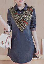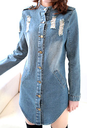 [당일발송] 스카프 포인트 반오픈 데님 롱 셔츠[SI#362_S]