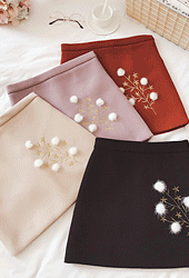 [당일발송]눈꽃 플라워자수 모직 미니스커트