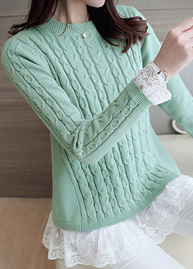 [당일발송] [60% SALE] 레이스 포인트 꽈배기 니트[KN#889]