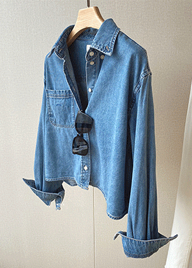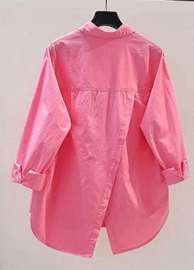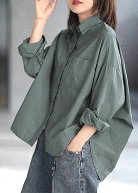 뒷절개 포인트 원포켓 긴팔 셔츠