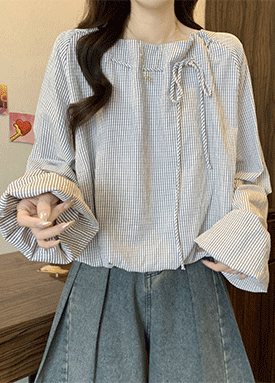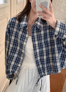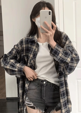 ★수요특가 자정마감 50%★루즈핏 스트랩 잔체크 블라우스