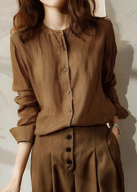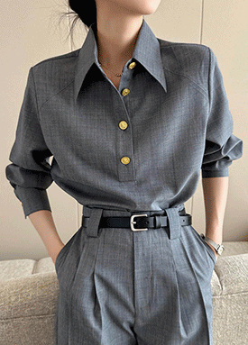세련된 금장 카라 블라우스&벨티드 롱 슬랙스 2SET