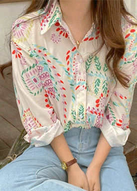 유니크 에스닉 레이스 포켓 블라우스[정면 앞포켓있음/제품컷으로 발송]