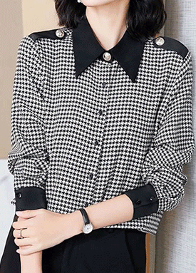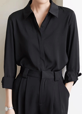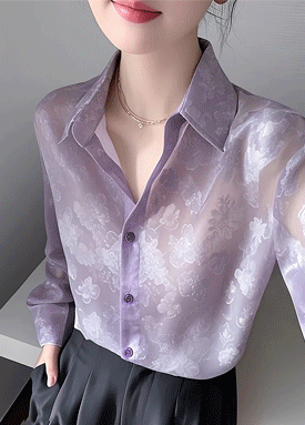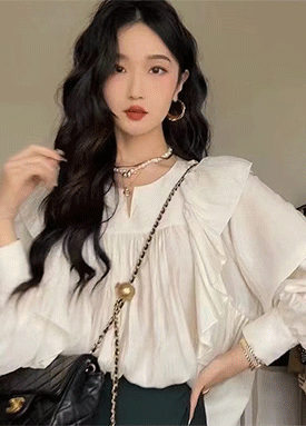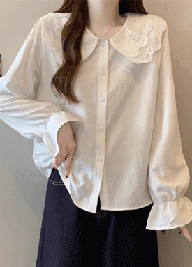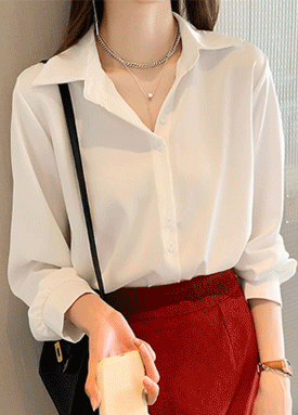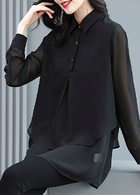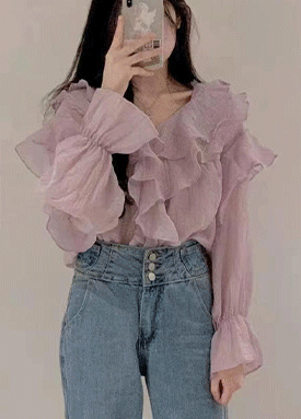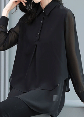 ◈[당일발송] 시스루 더블 카라 쉬폰 블라우스