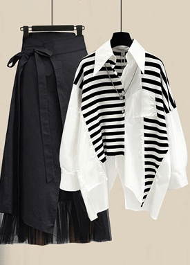 [당일발송]루즈핏 3컬러 스트라이프 카라 셔츠