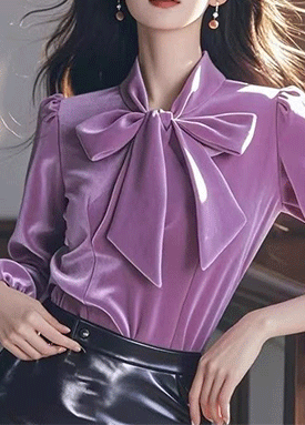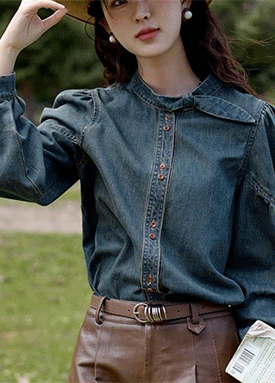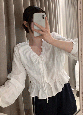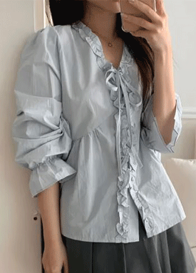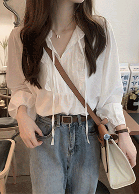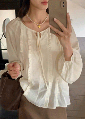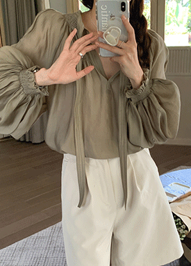 페미닌 벌룬소매 루즈핏 리본 블라우스