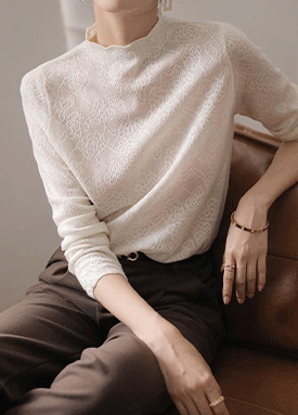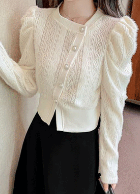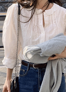 ◈[당일발송] 페미닌 슬림핏 진주 레이스 블라우스