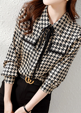 [당일발송]★수요특가 자정마감 50%★하운드투스 체크 리본넥 블라우스