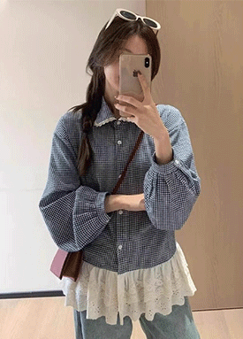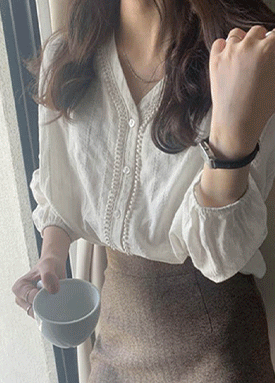 ◈[당일발송] 러블리 브이넥 레이스 블라우스