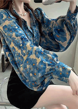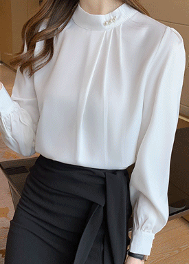 [당일발송]볼륨소매 유니크 핀턱 블라우스
