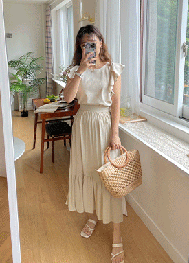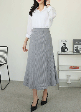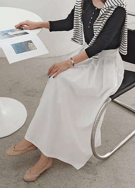 ◈[당일발송] 뒷밴딩 심플 플리츠 롱스커트