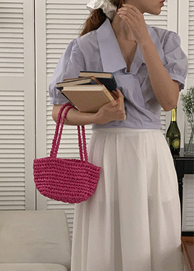 스퀘어넥 퍼프소매 데일리 티셔츠