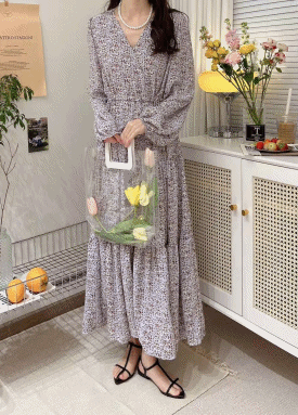 ◈[당일발송] 브이넥 튤립 쉬폰 원피스