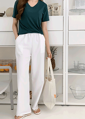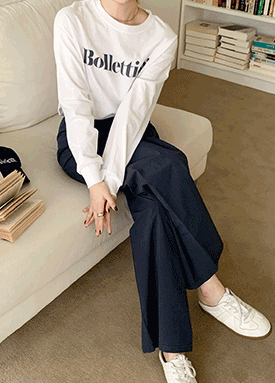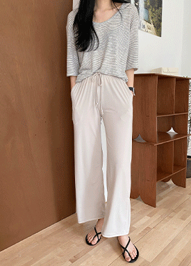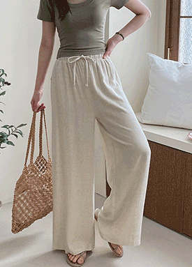 캐주얼 리본 허리밴딩 와이드 팬츠 [44~66츠천]