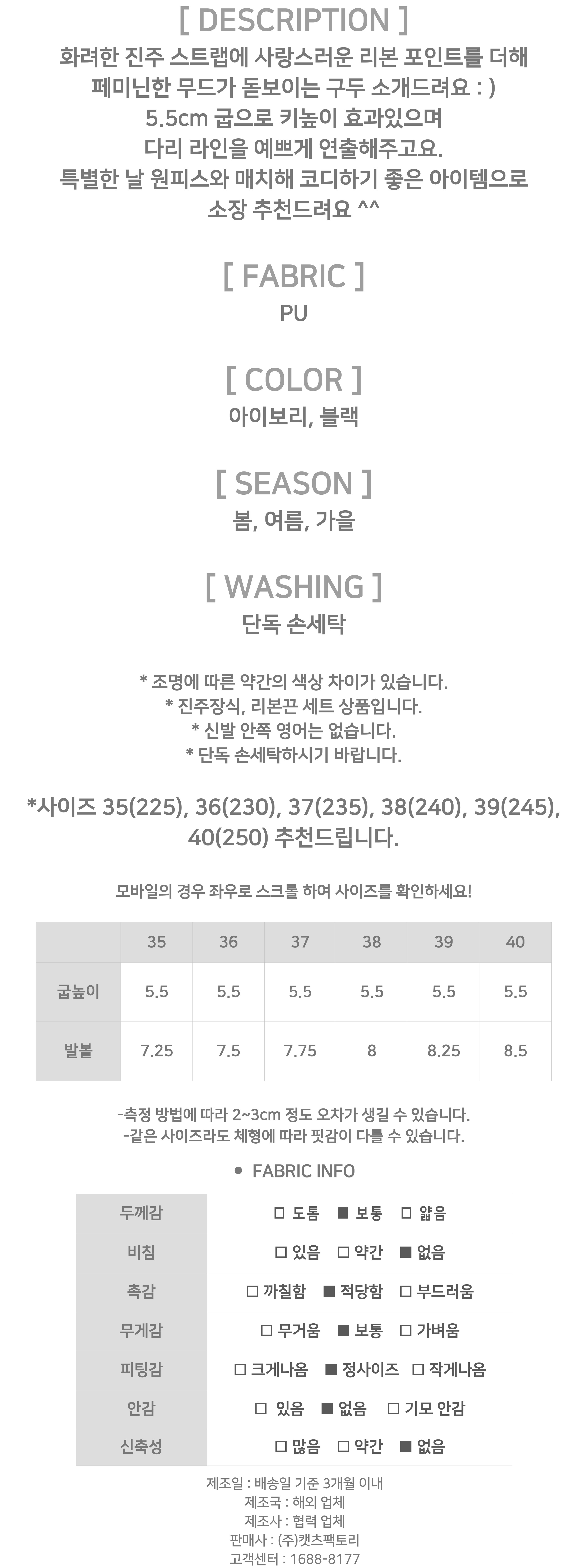 174499 ◈[당일발송] 페미닌 진주 리본 구두 25390