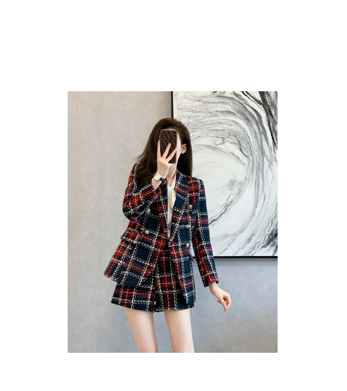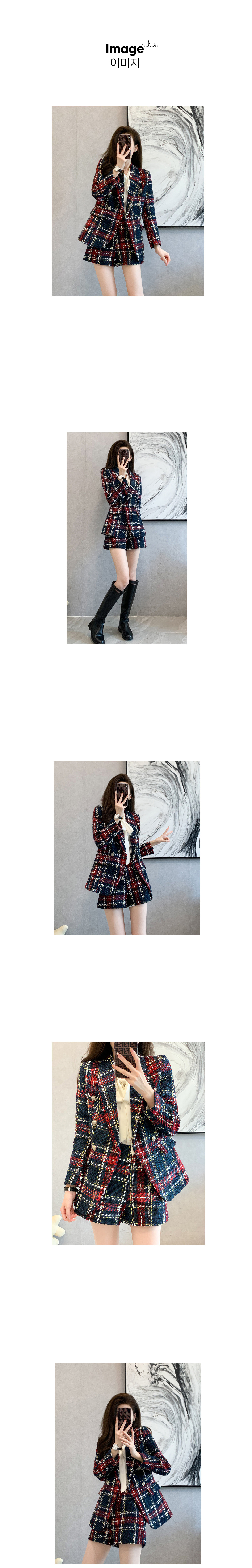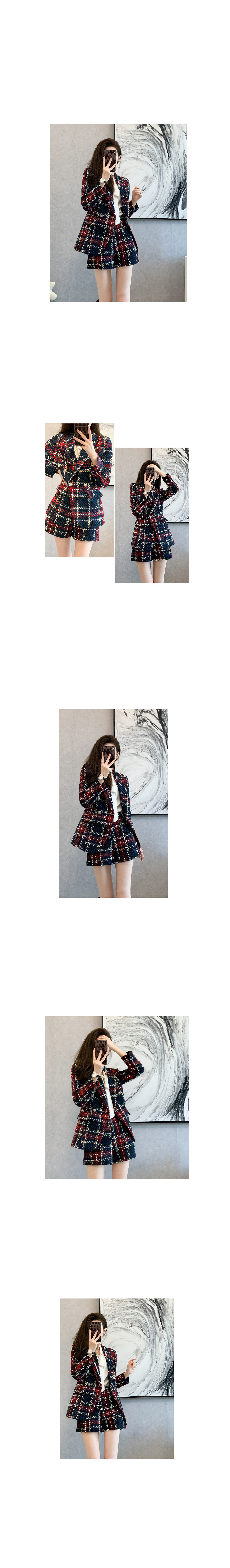 163714 [재입고] 체크 더블 버튼 자켓+숏팬츠 세트 69200