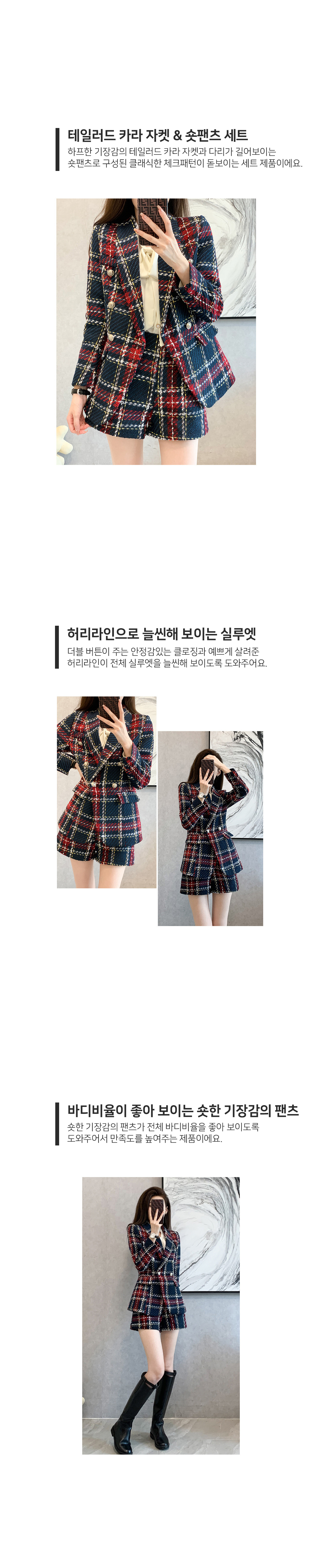 [재입고] 체크 더블 버튼 자켓+숏팬츠 세트