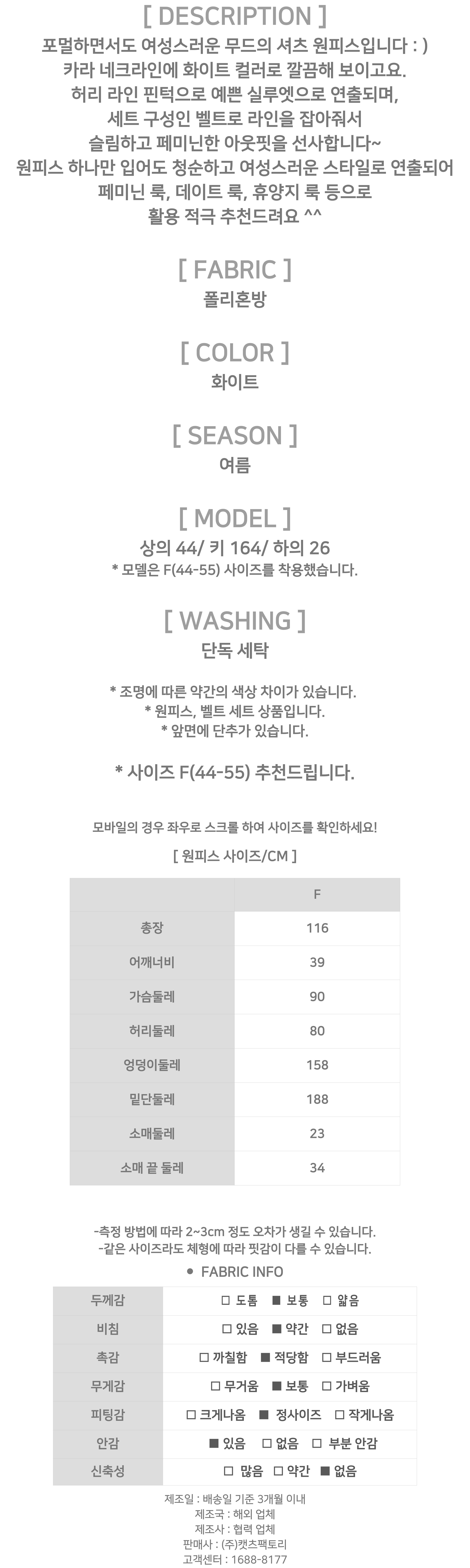 174779 포멀 화이트 셔츠 원피스&벨트 SET 38690