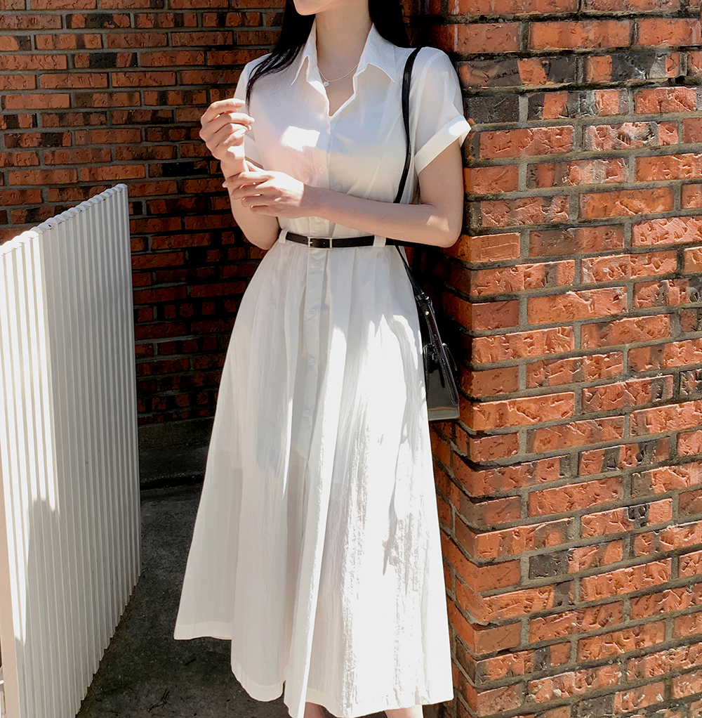 포멀 화이트 셔츠 원피스&벨트 SET