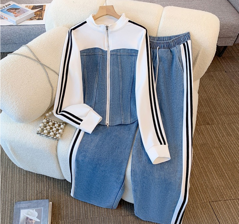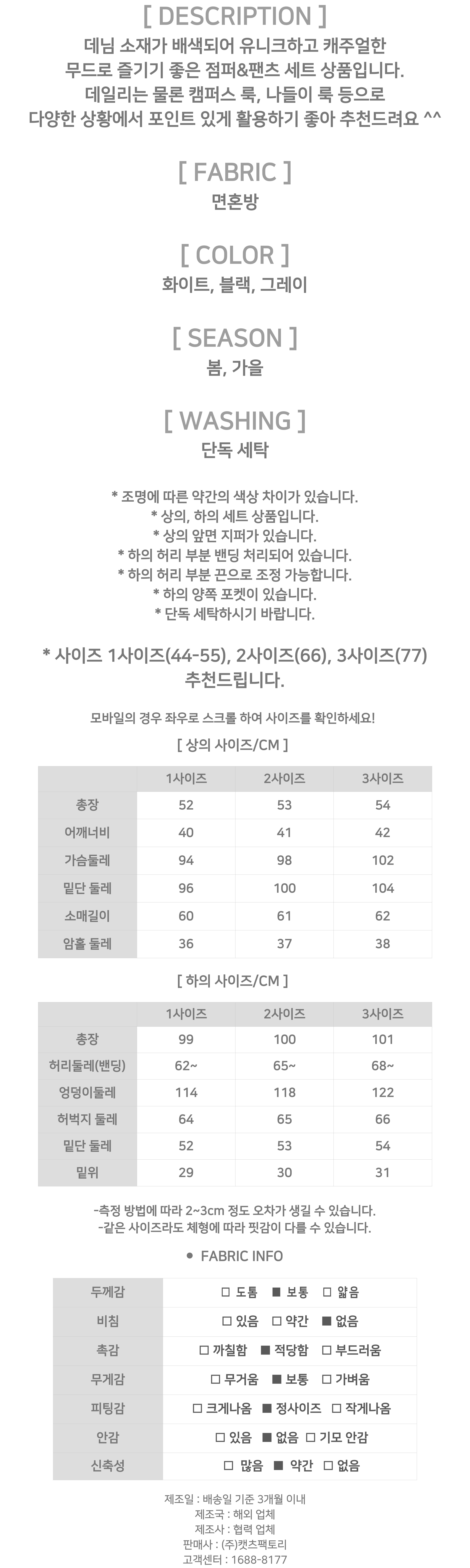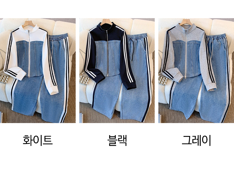 데님 트랙 집업 점퍼&와이드 팬츠 2SET