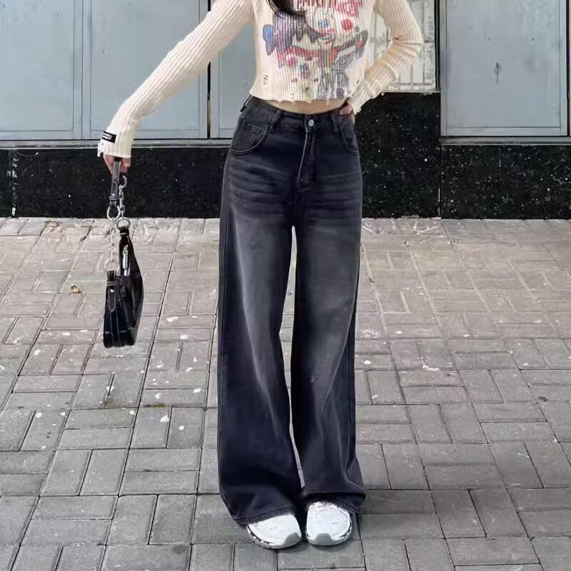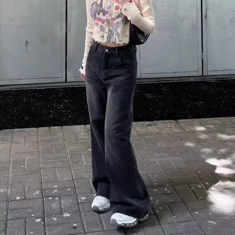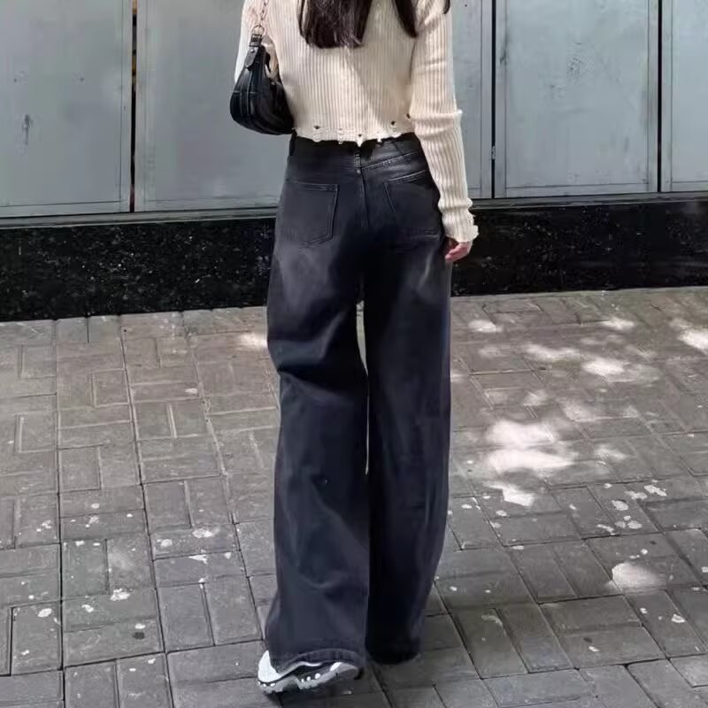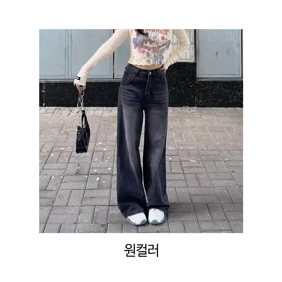 블랙 워싱 일자핏 세미와이드 데님