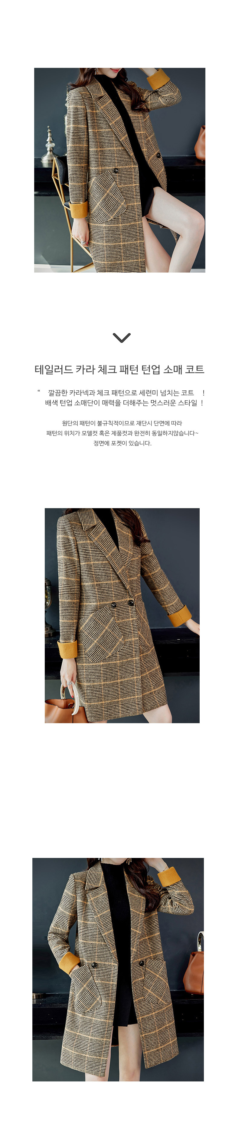 ◈[당일발송] ★주문량 3,900장 돌파★[재입고] 테일러드 카라 체크 패턴 턴업 소매 코트