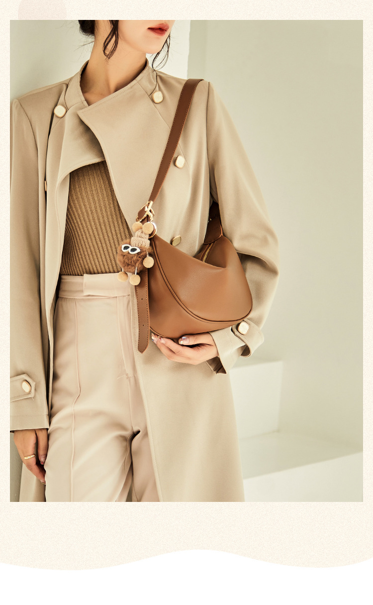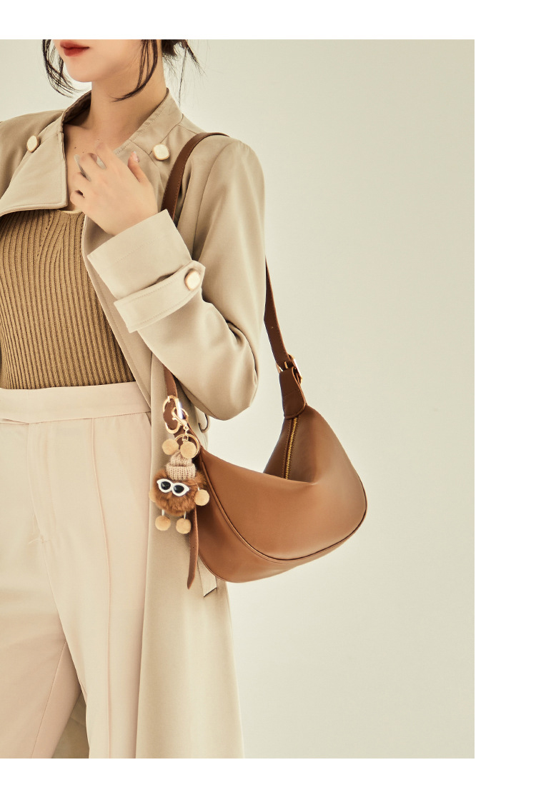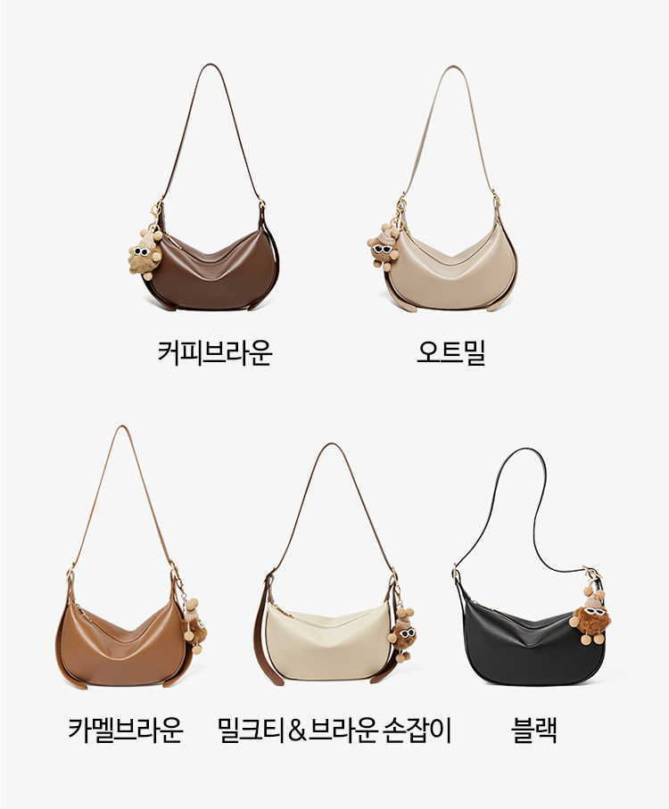 천연소가죽 무지 반달 숄더백