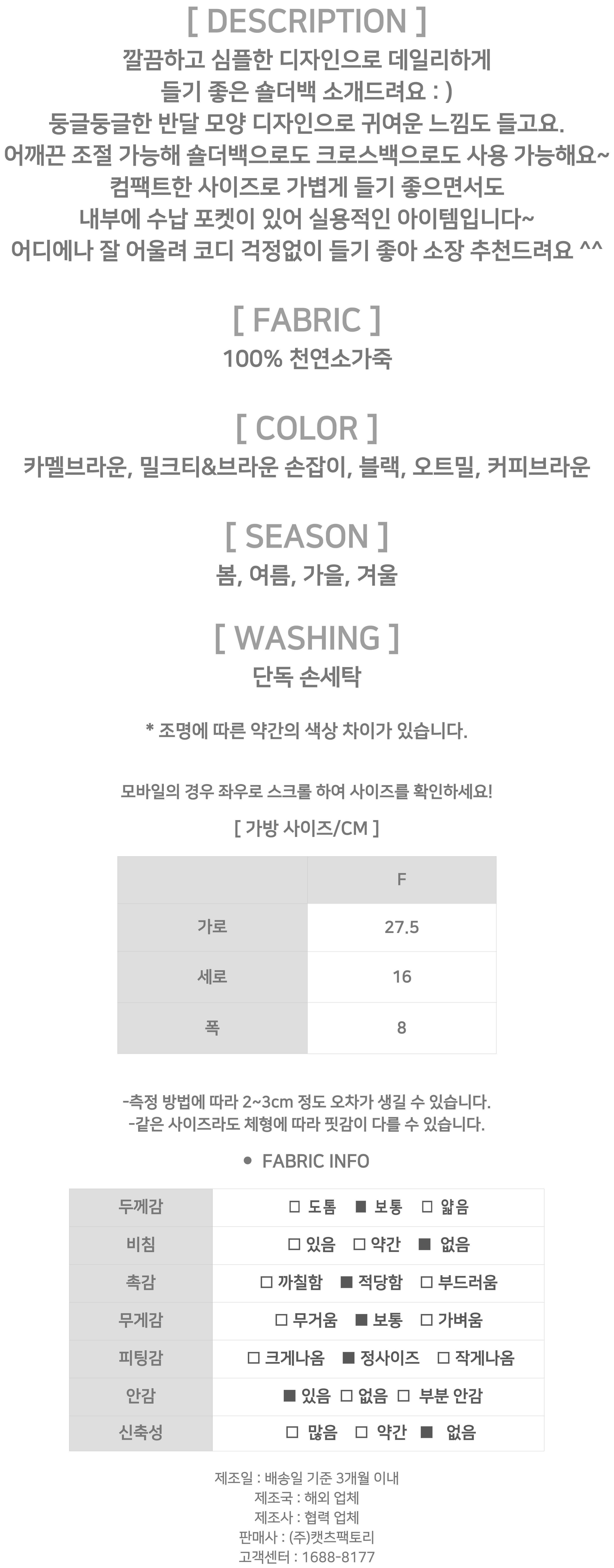 - 상품의 색상은 사용하시는 모니터 사양에 따라 실제 색상과 다소 차이가 있을 수 있으며, 이는 불량의 사유가 되지 않습니다.