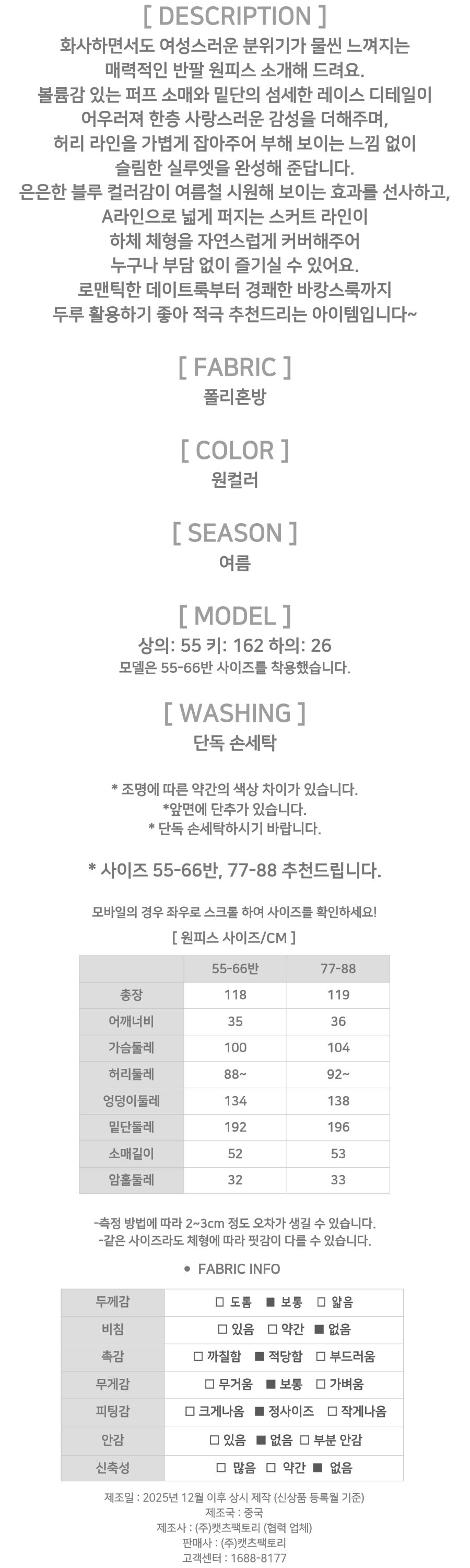 스카이 블루 레이스 패치 퍼프 롱 원피스[벨트포함 벨트 디자인 변경 상세페이지 참고해주세요]
