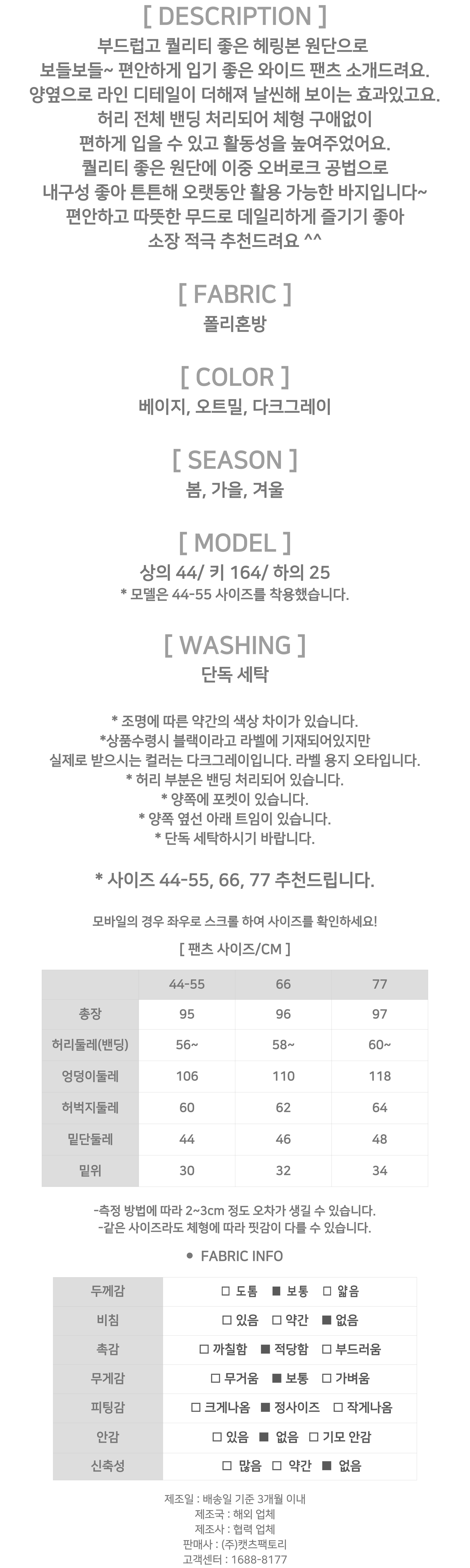 175710 ★수요특가 자정마감 50%★헤링본 트임 와이드 팬츠[기모있음] 47980