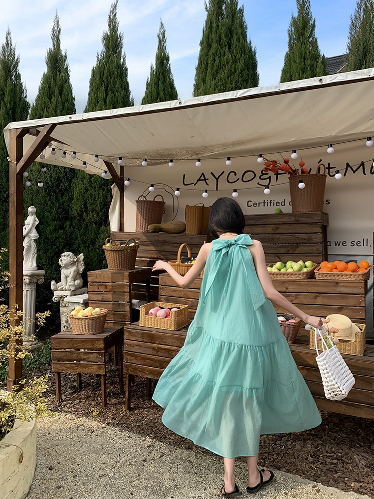 ◈[당일발송] 민트 쉬폰 A라인 리본 원피스