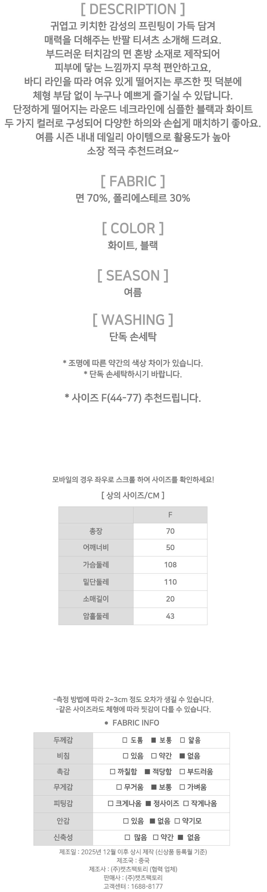 - 상품의 색상은 사용하시는 모니터 사양에 따라 실제 색상과 다소 차이가 있을 수 있으며, 이는 불량의 사유가 되지 않습니다.